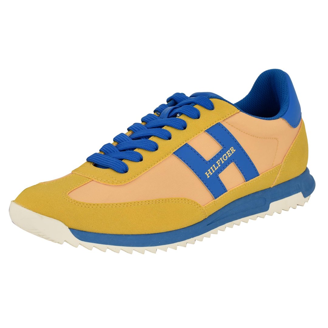 Zapatillas de estilo retro-running con combinación de colores vibrantes y logo “H” lateral distintivo de la marca. Confeccionadas en mezcla de textil (nylon) y gamuza sintética, que aportan ligereza y transpirabilidad. Cuentan con interior acolchado de material textil para mayor confort y suela de goma dentada, ideal para una buena tracción y uso diario.